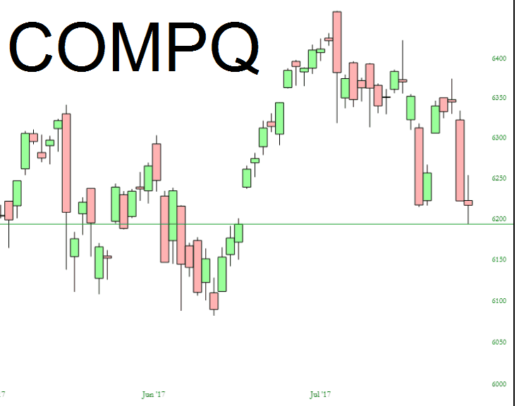 The story is similar on the NASDAQ. For whatever reason, the last two Thursday were the big smack-downs (and almost identical in size).