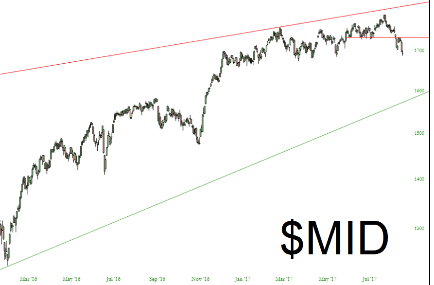 A closer look shows the breakdown more plainly. The small caps and mid caps have been tumbling for a few weeks.