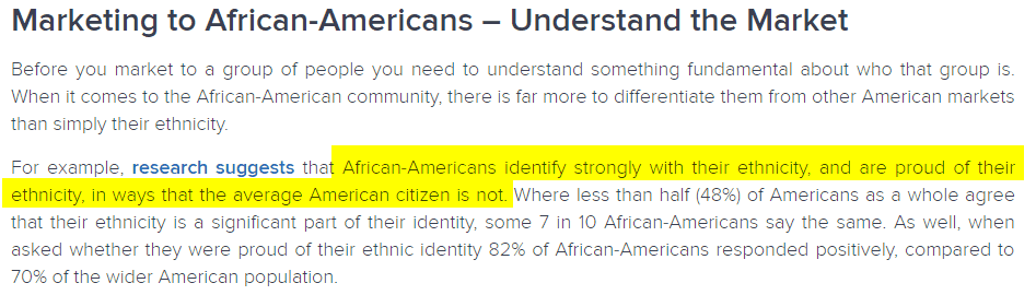 And there is likewise a mountain of information for marketers to make the most of these different market segments (positing, among other pearls of wisdom, that black people are not dark-skinned white people).