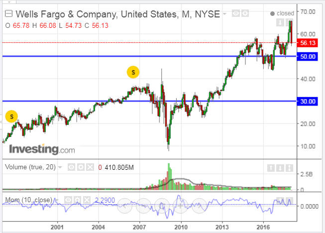 The following monthly charts of XLFEUFNGXCWFCGS & DB all show that they had reached major resistance (either price or trendline) and have pulled back. Their respective support levels are shown, along with the momentum indicator.