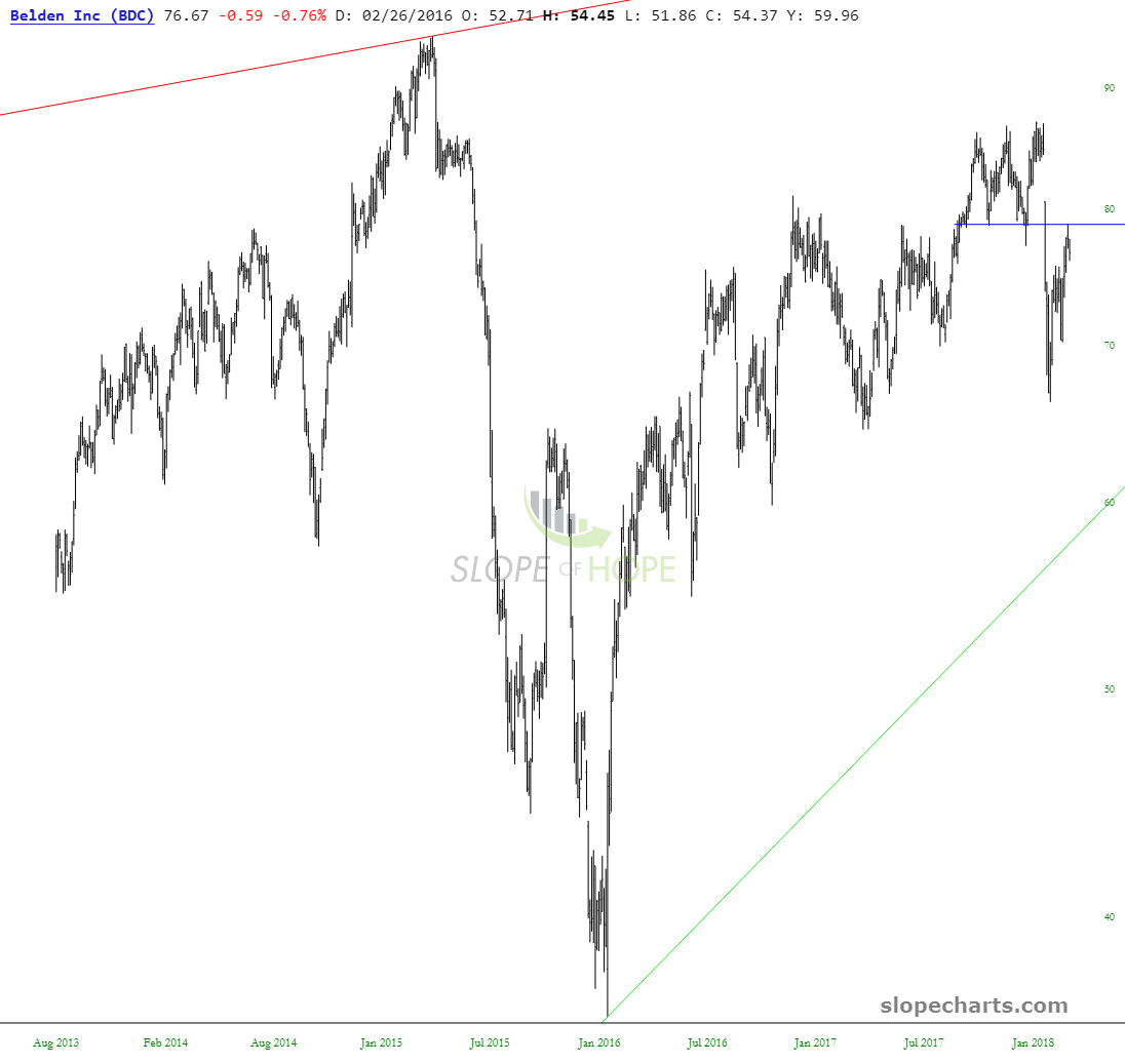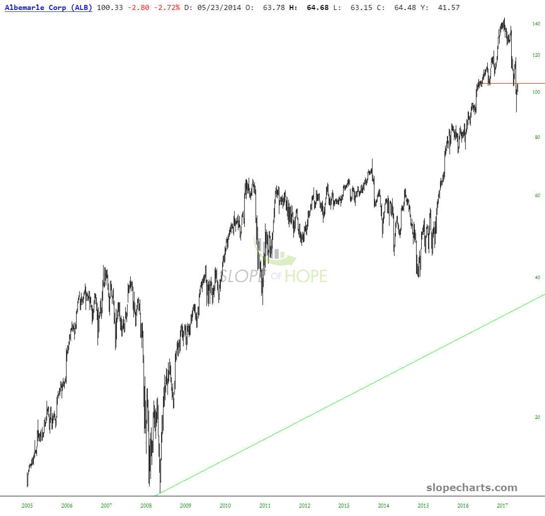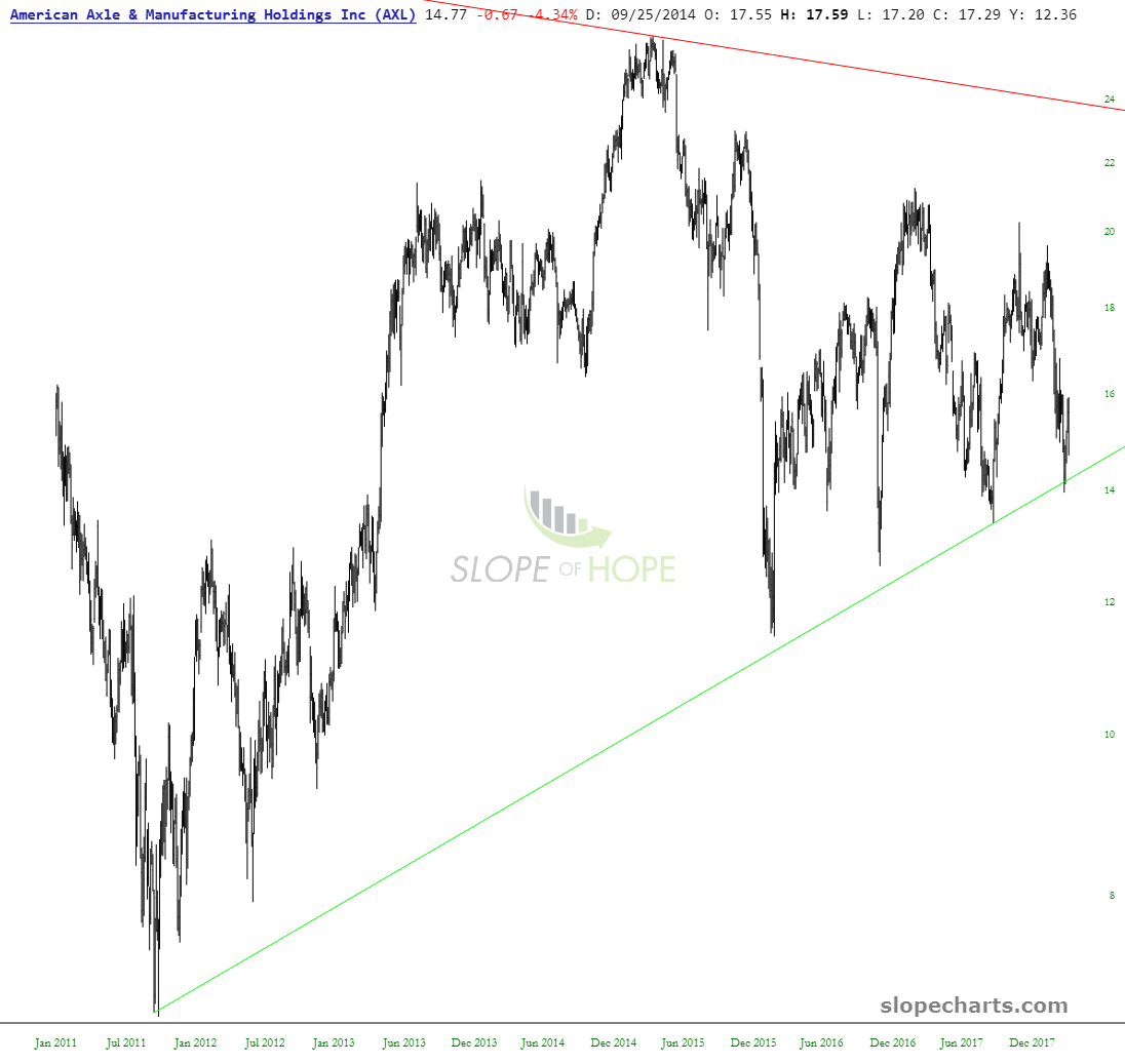 Preface to all four parts: I went through my entire chart set last night, and even though I’m already short sixty different positions, I found a bunch of other alluring potential setups. I am sharing them here in four parts, due to the quantity. Parts 1 and 3 are for everyone, and parts 2 and 4 are exclusively for PLUS members (who, bless them, have single handedly funded the very expensive creation of the forthcoming new Slope of Hope). As always, click on any image for a bigger version, and use SlopeCharts to check it out for yourself.