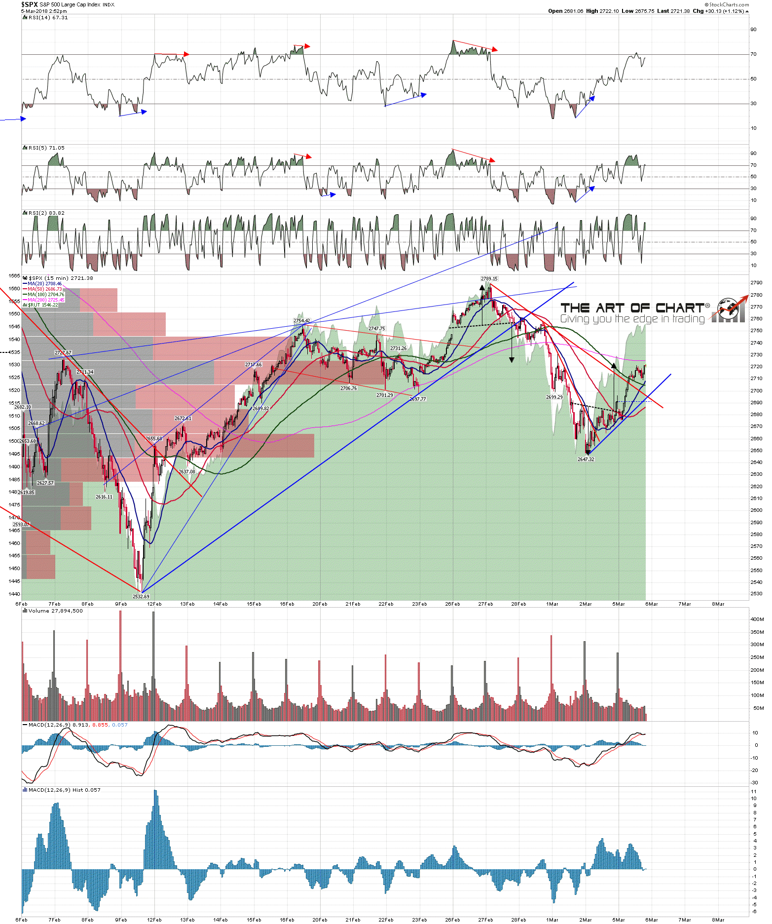 There are possible sell signals brewing on the 15min charts here, but nothing on the 60min charts so far. SPX 15min chart: