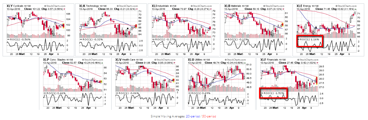 In this regard and in particular, watch for any continued strength in Energy (XLE) and any continued weakness in Financials (XLF) next week and beyond, which may equate to equity weakness, in general.