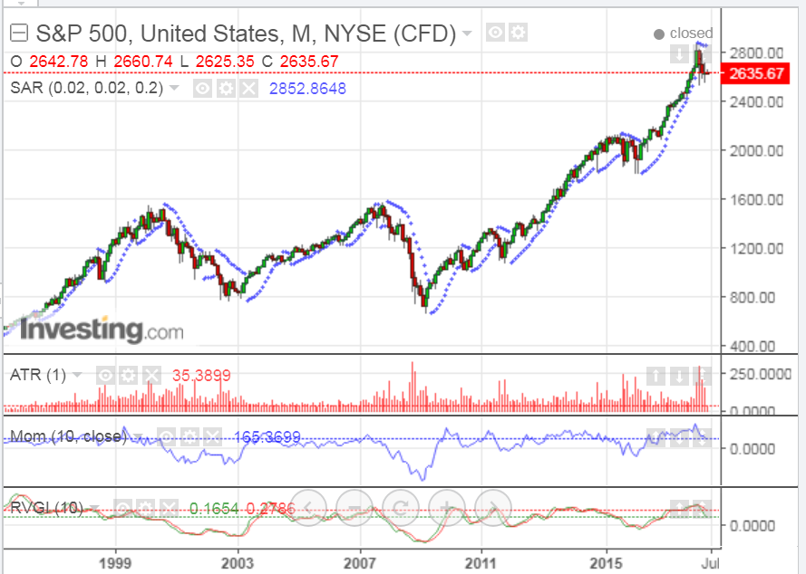 In the meantime, the technical indicators on the following monthly chart of the S&P 500 Index (SPX) can be monitored to gauge the strength or weakness of equities.