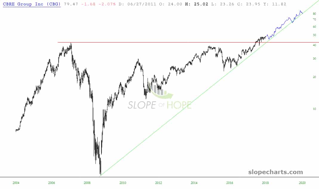 And homebuilder DR Horton (again, look at its behavior against the trendline; INCREDIBLE!)