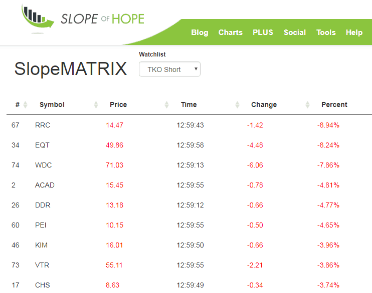 You will be able to choose any of your watchlists from the SlopeCharts application and (hopefully!) watch the quotes stream in real time. This is just a start for us on this new page, but email me any interesting feedback.