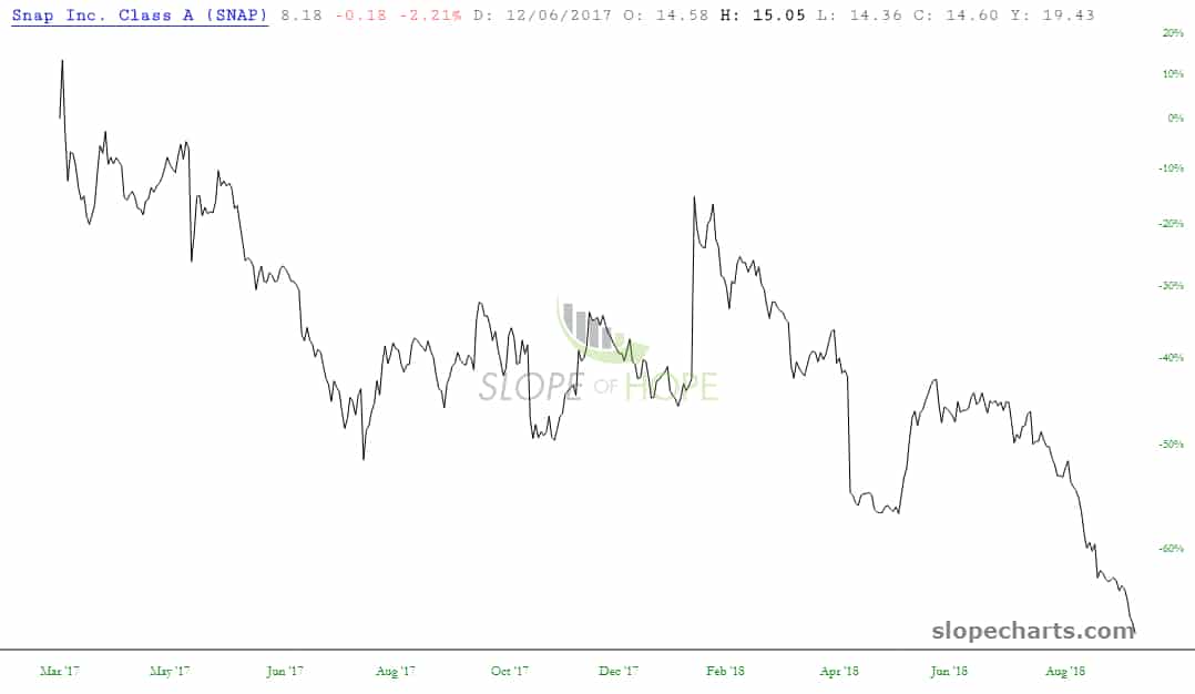 We all know what happens when a technology falls out of favor, though. Look no further than one of Slope’s favorite whipping boys, SNAP, which apparently has as its principal product “Creating Capital Losses for Investors“. So well do I remember the news reports at the time SNAP came out. Millennial after millennial excitedly described how they were opening up their very first stock brokerage account so they could buy SNAP since “everybody” was using it. Uh-huh.