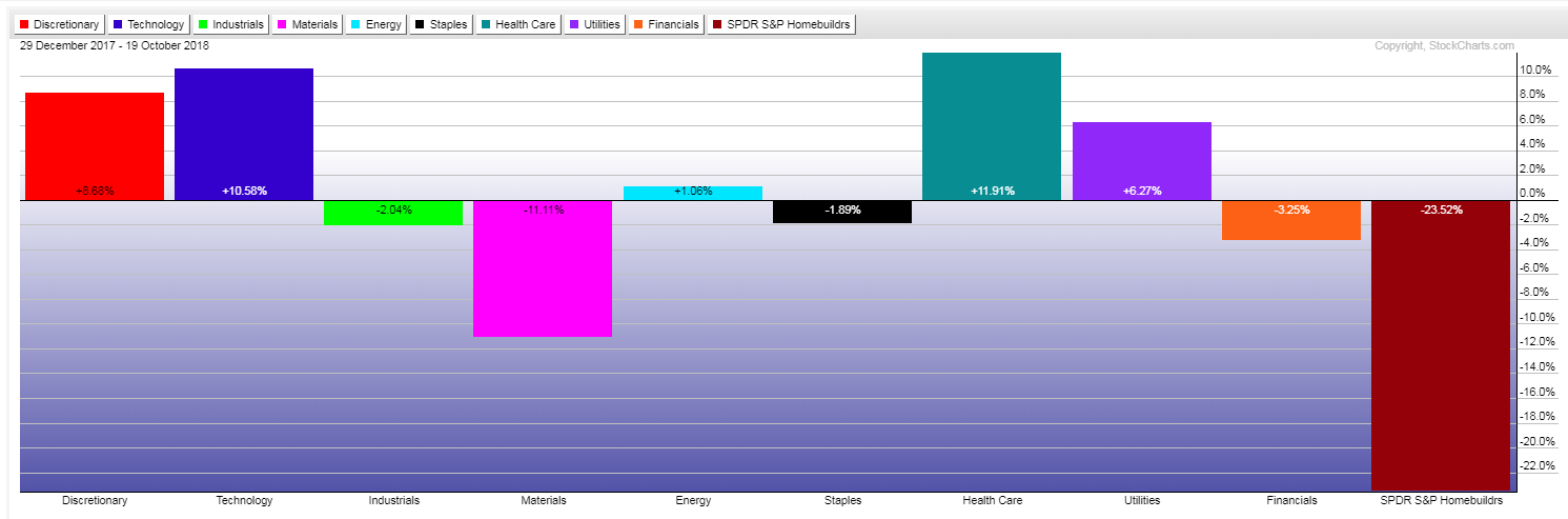 Year-to-date % Gained/Lost graph of 9 U.S. Major Sectors + Homebuilders