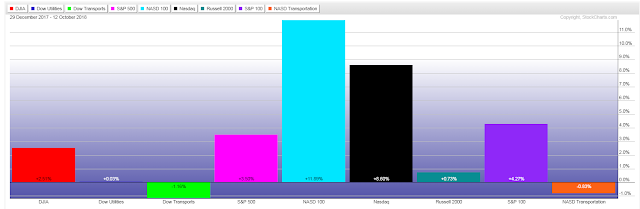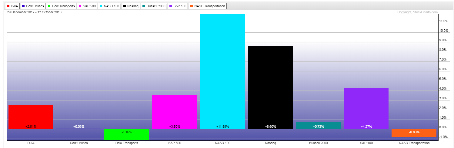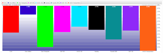 The following percentages gained/lost graph shows the amounts that these indices have lost to date from their highs of this year (August 29).