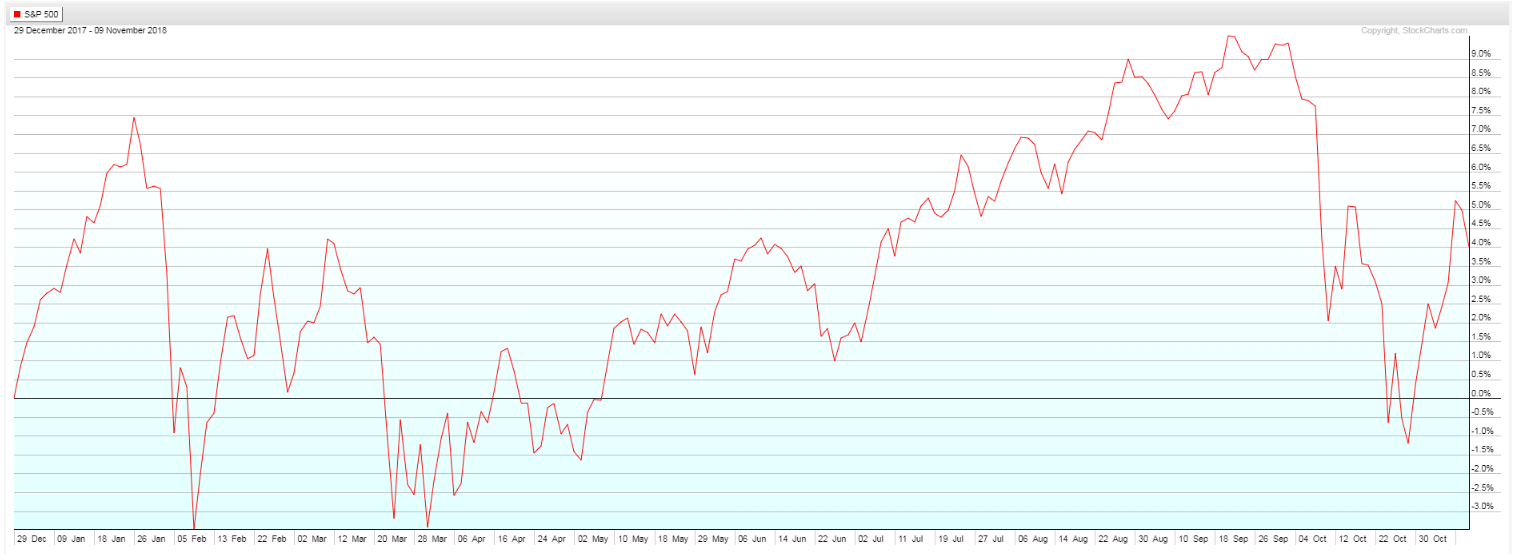 At its all-time high set on September 21 of this year, the SPX had gained 9.62% year-to-date, as shown on the first percentage graph.