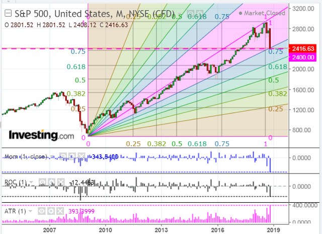 Since then, and as of Friday’s close, the SPX has plummeted and it came within eight points of reaching its first major support level of 2400, as I described in my post of December 17.