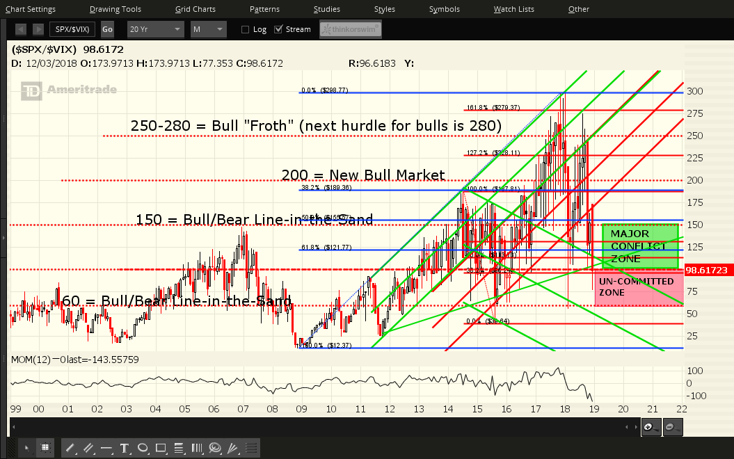 SPX:VIX Ratio — Each candle on the following ratio chart represents a period of one month.