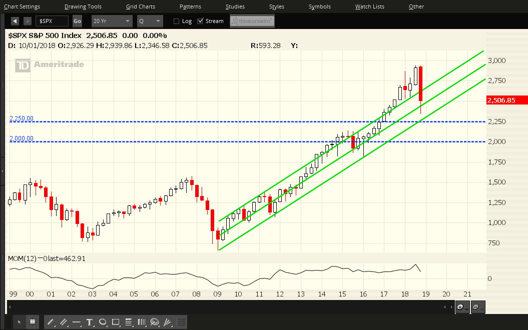 SPX — Each candle on the following chart represents a period of one quarter.