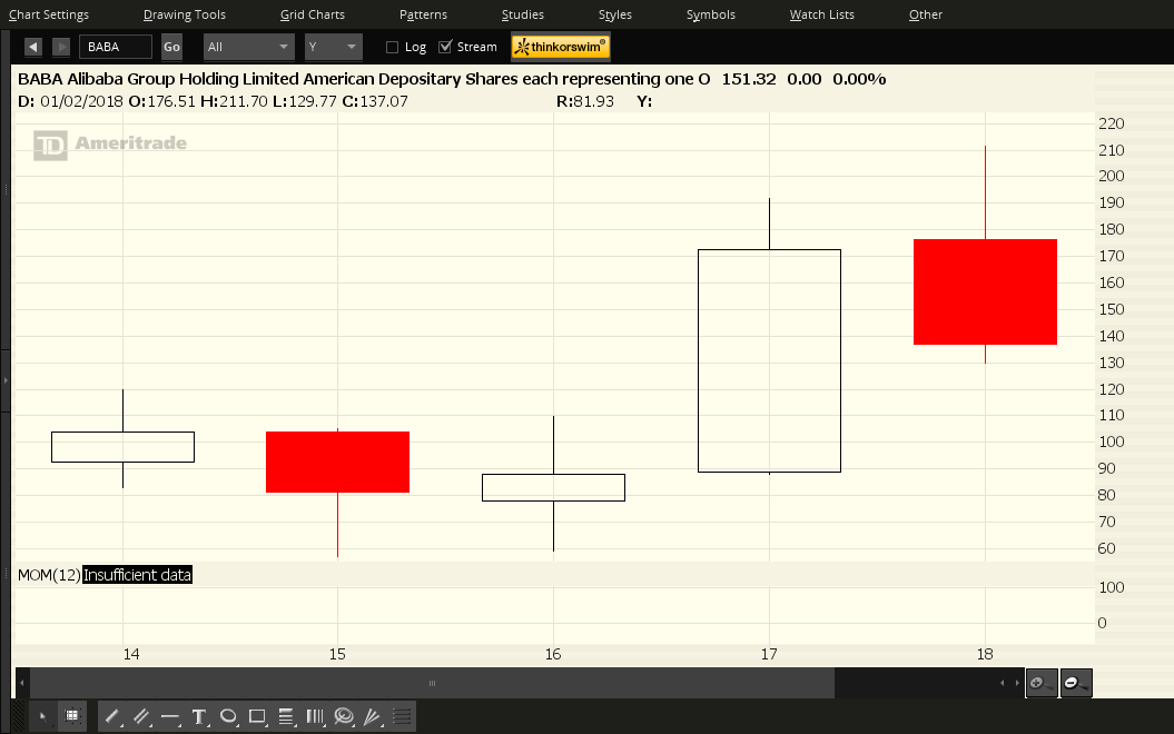 Each candle on the following charts of BABA, BIDU, NVDA, TSLA and TWTR represents a period of one year. Also absent on these charts is 2019’s candle.