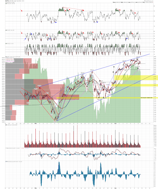 On the smaller wedge from the March low there was also a perfect hit of wedge resistance at the high. Wedge support is now in the 2835 area. SPX 15min chart: