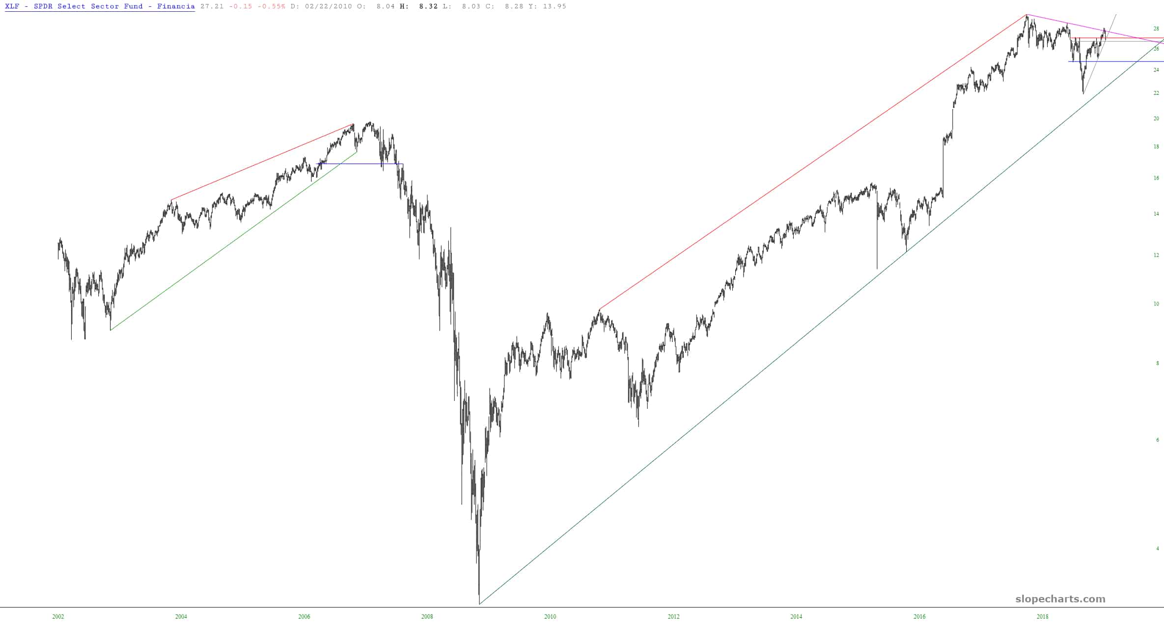 Earlier today, I sold the entirety of my XLF puts, in spite of the fact they don’t expire until January 2020. I’d like to get in again at a good price. But I felt it was an opportune time to scoot, based on the trendline support.