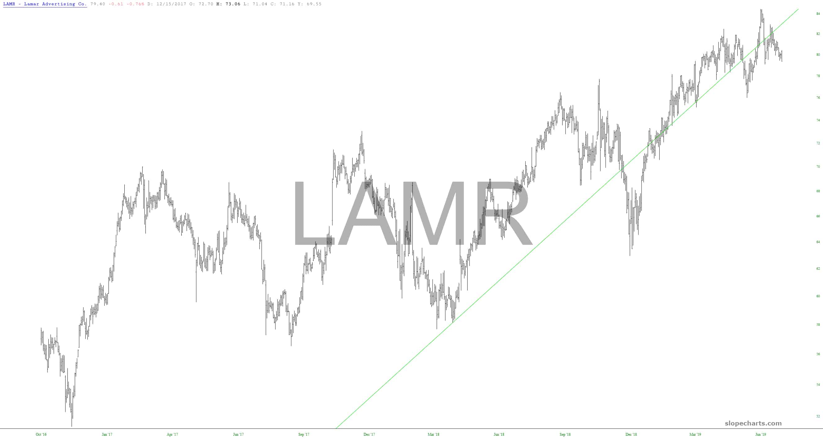 Preface to all four parts: I have 57 short positions, 55 of which are profitable (which is pretty cool, since the market was at a lifetime high on Friday). I have broken these SlopeCharts up into four roughly-equal presentations, zoomed in to the portion I feel is most germane. Parts 2 and 4 are only accessible by Gold and Diamond members, and as always, clicking on any chart brings up a huge image (and you can use the arrows on the chart to navigate through the set).