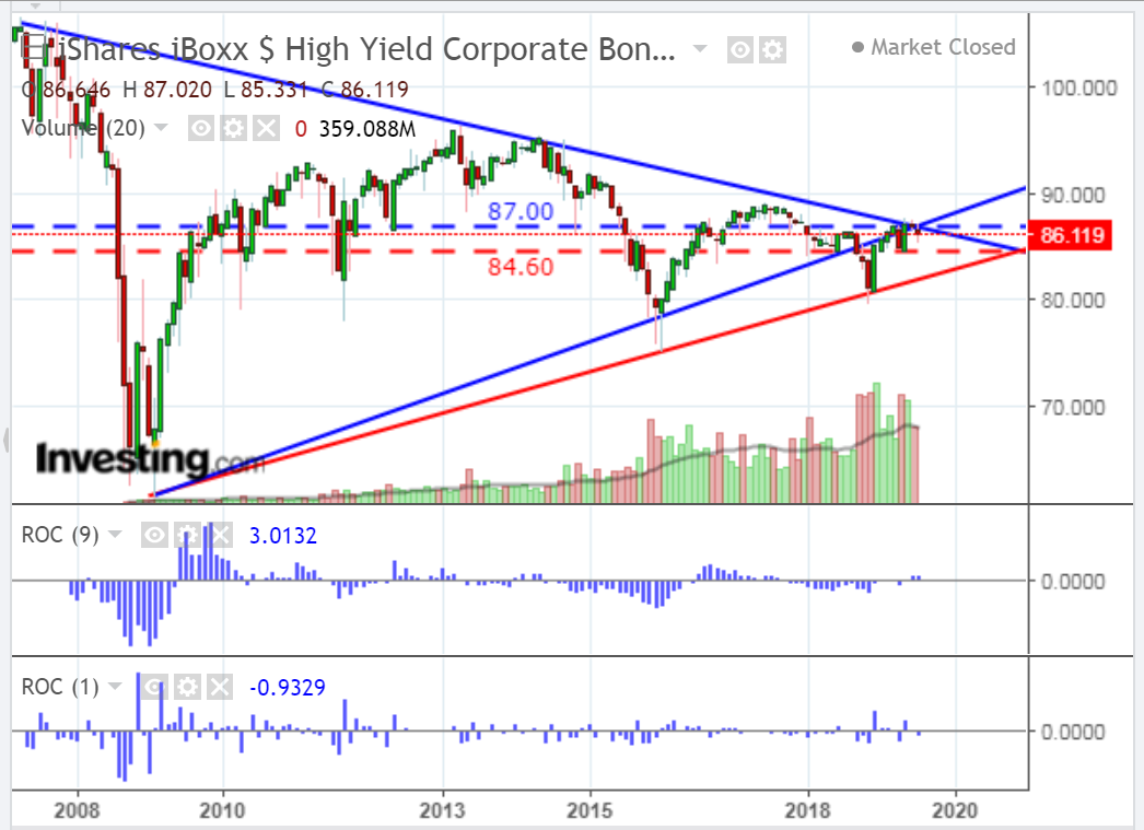 The High Yield Corporate Bonds ETF (HYG) is at an interesting juncture.