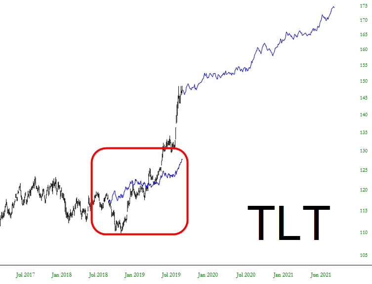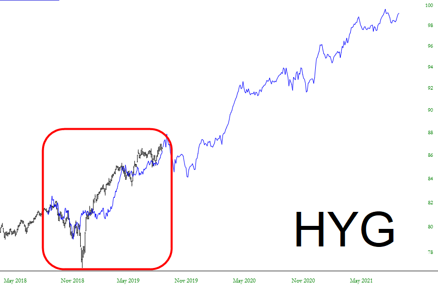 Probably the best one I saw of all was the high yield corporate bond fund, symbol HYG. This prediction of what would take place over the past year was remarkable.