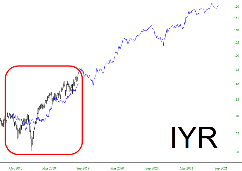 Turning to the real estate fund, symbol IYR, the results are much more interesting. The prediction was extremely close to what transpired, so I think we can give some stock (no pun intended) to what lay ahead.