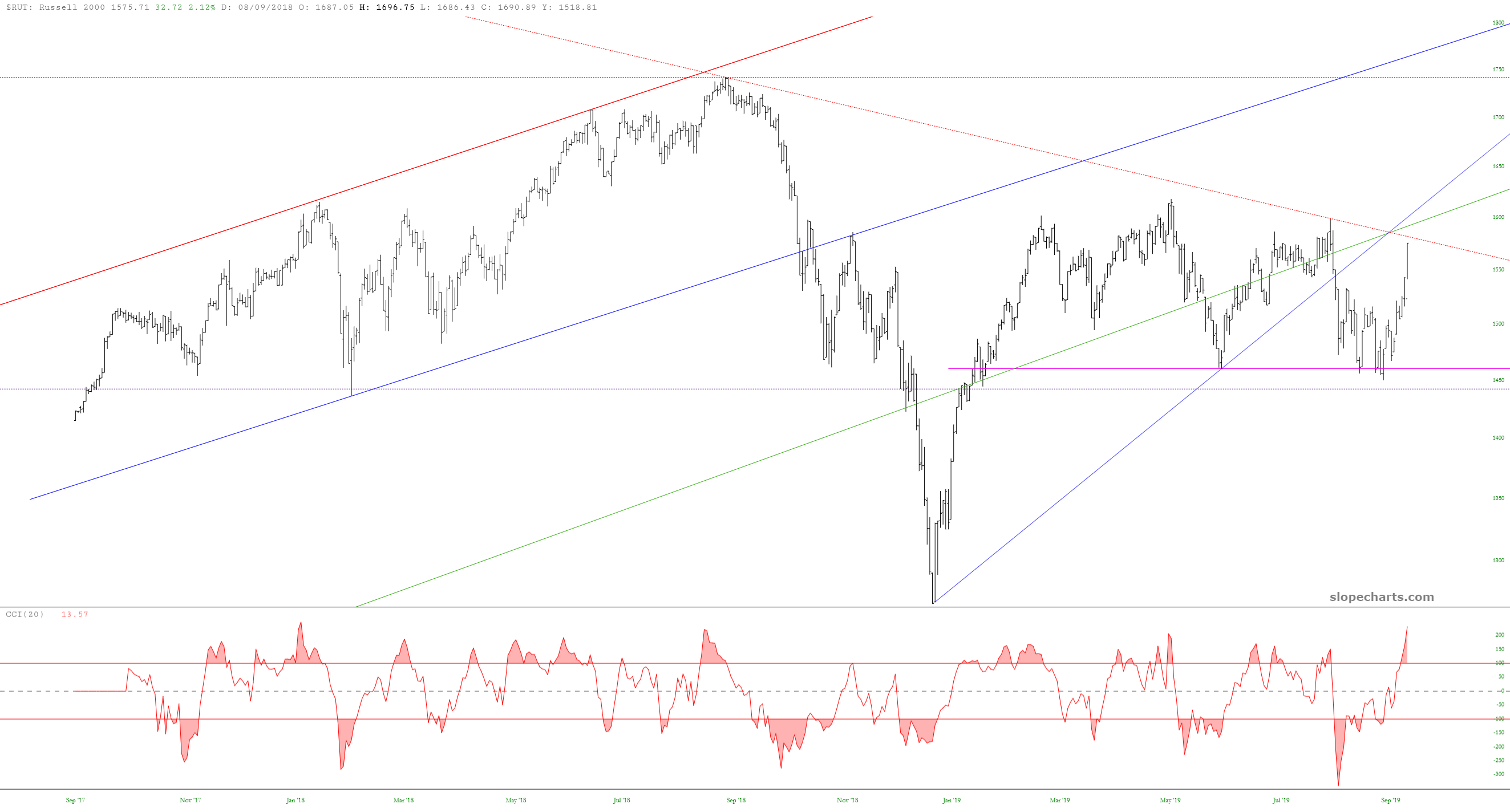 Russell with CCI(20) – that is the commodity channel index – seems to be nailing reversals fairly well lately