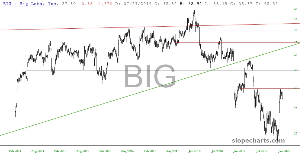 As I make my way through the Deep South, my original homeland, I’ve stopped by a roadside Waffle House to offer up charts of a few of my favorite positions. I’m zoomed in on what I consider the most salient portions. These are all – – you should know by now – – short sales! Because I’m bearish on everything. Except, of course, one glorious outlier: