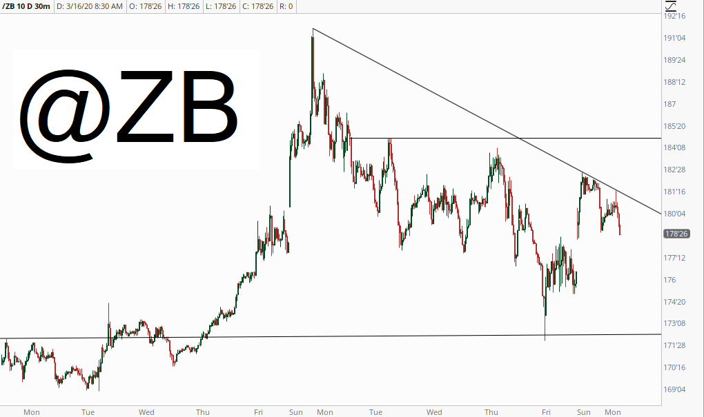 Here’s the /ZB chart, which shows the more recent breakdown and the descending trendline.