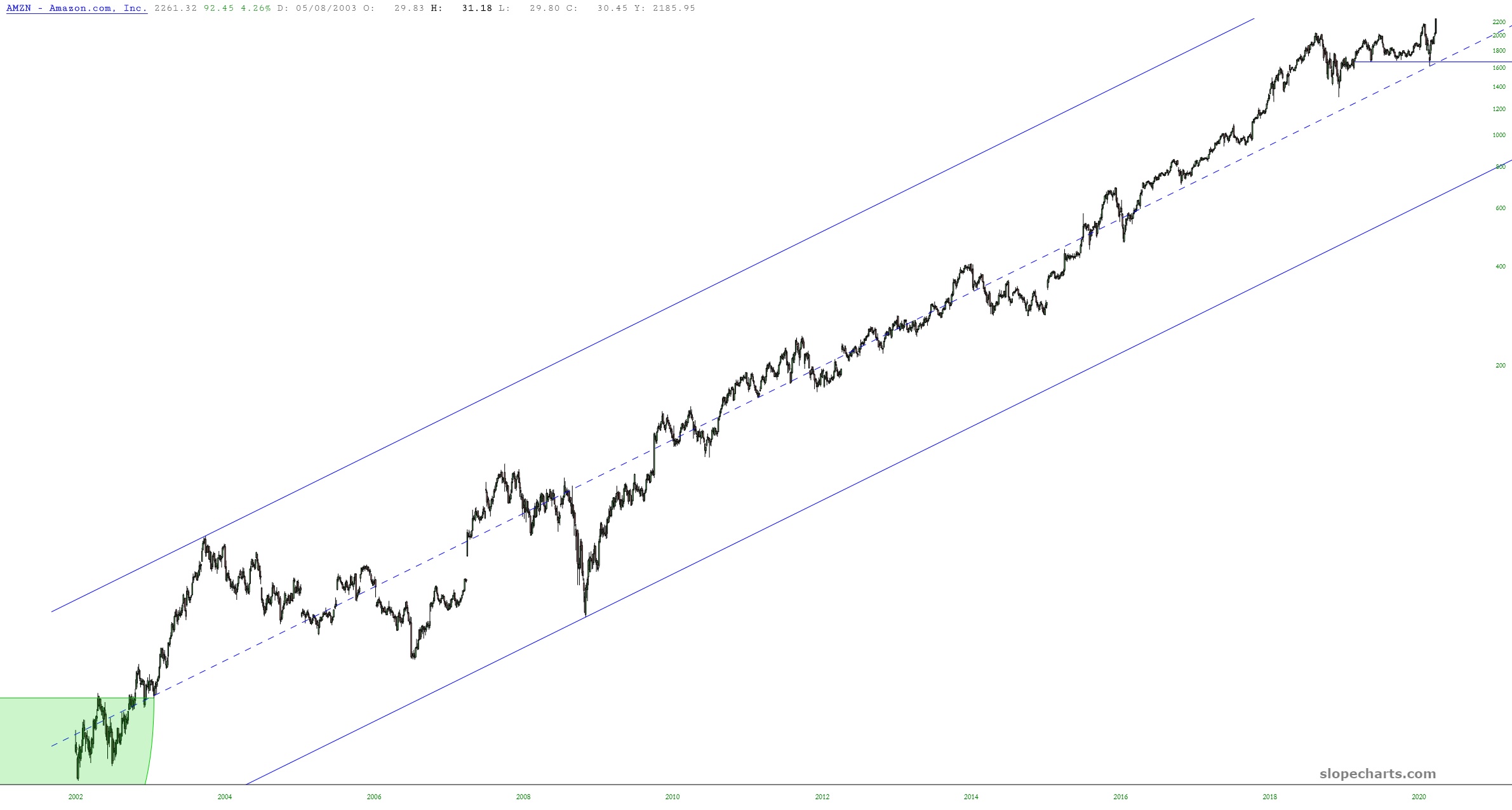 Some stocks are acting like Covid-19 never even happened. It’s quite extraordinary. And, considering the $6 trillion that Powell is throwing at equities to save them, perhaps it’s not surprise. Here, for instance, is Amazon, higher than any point in human history: