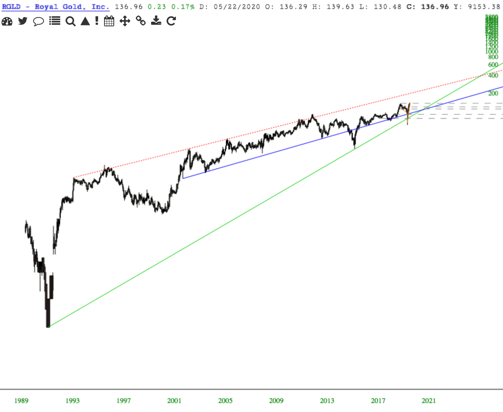 The blue chip streaming/royalty companies are Franco-Nevada [FNV – $27.98B], Wheaton Precious Metals [WPM – $20.08B] and Royal Gold [RGLD – [$8.98B].
