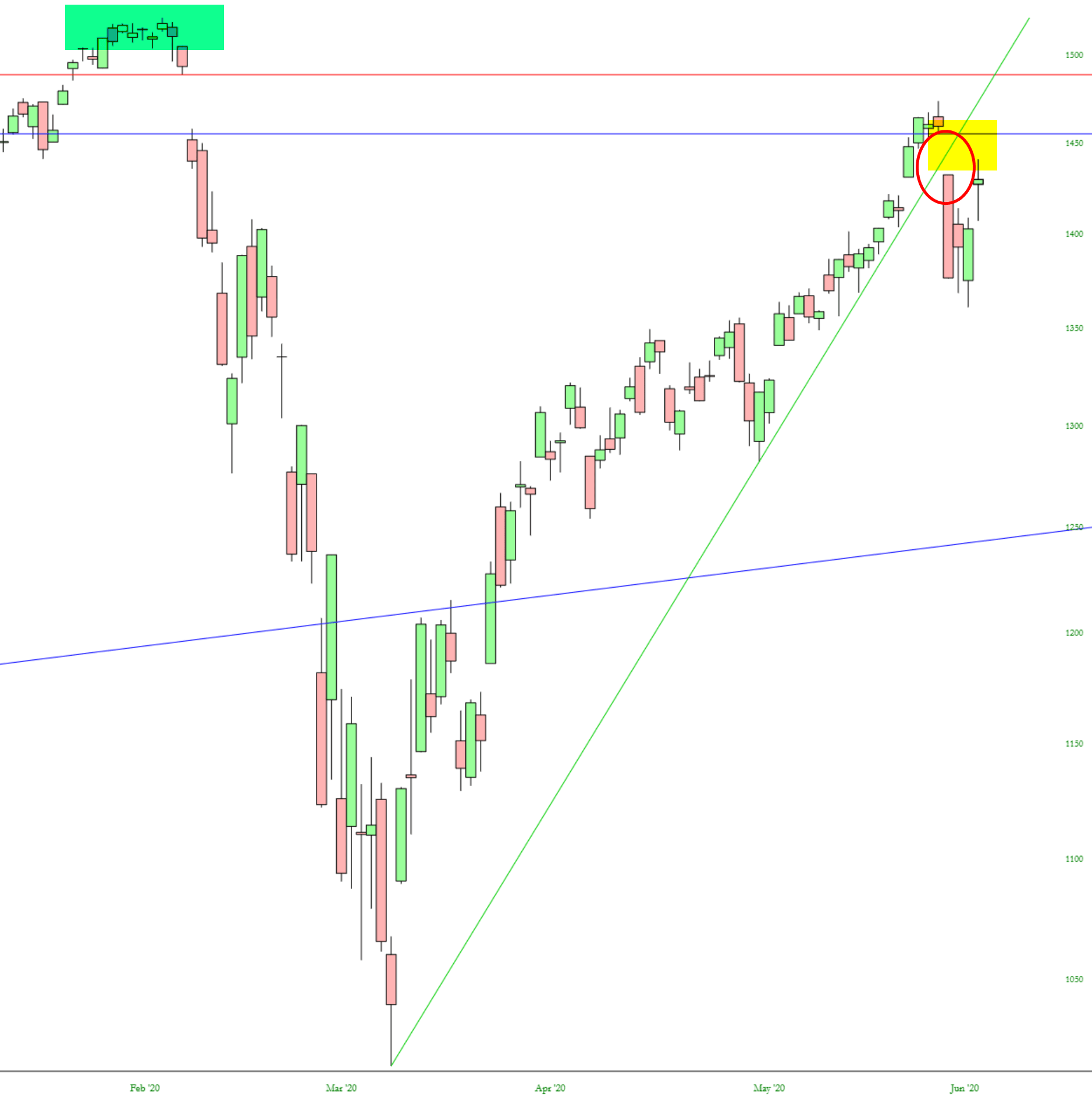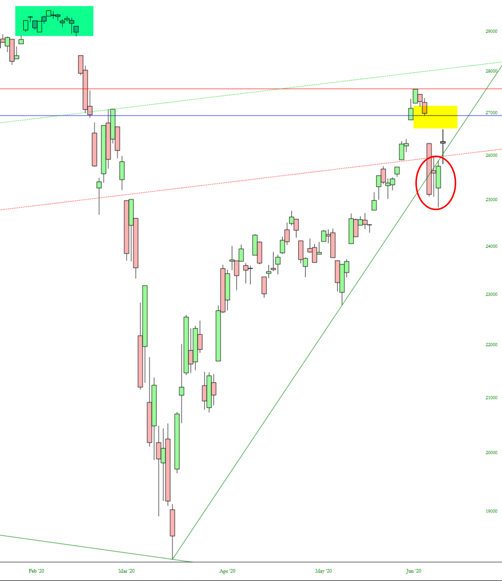 Below I offer several major cash index markets on which I’ve marked a few common elements: