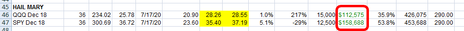The profits the next day are shown below: about a quarter million dollars in gains based on these very simple SPY and QQQ options. Of course, I never would have actually done something this crazy, but it was pretty cool to see how rapidly those profits amassed.