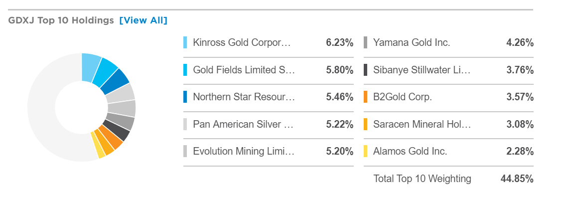 Premium members have access to all the sectors data, and I used the Jump to Sector command to examine the individual gold mining stocks.