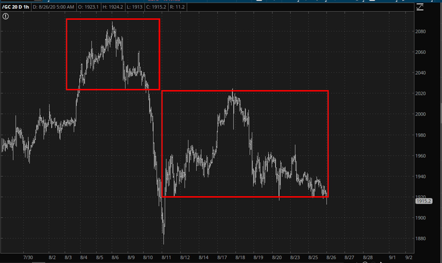 The only asset which has been sucking out loud lately has been gold. My “Tim goes to the bullion shop” timing hasn’t been too terrible lately. Although I continue to believe gold’s multi-year future is very bright, short-term I got very uncomfortable above $2000/ounce, so I disposed of the majority of my holdings. We could be falling hard, although I think there’s excellent support in the 1700-1750 zone. You can see the breakdown in /GC happening here: