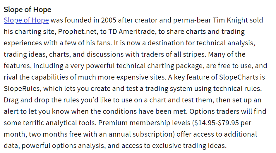 I got the happy news this morning that none other than our own Slope of Hope has been included in Investopedia’s Top Technical Analysis Tools for Traders Here’s the snippet: