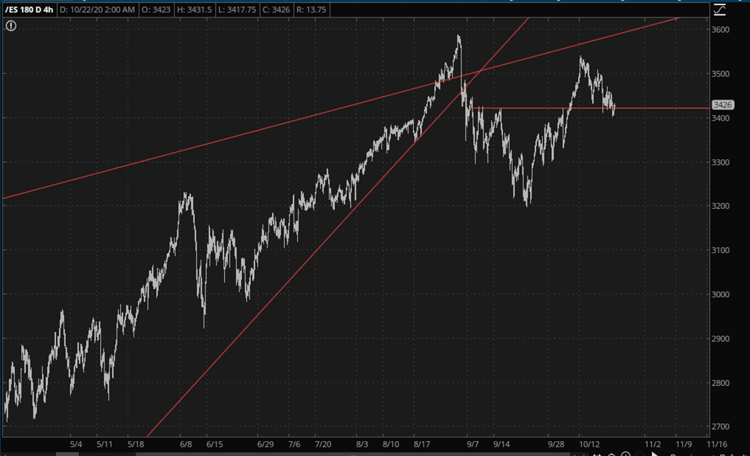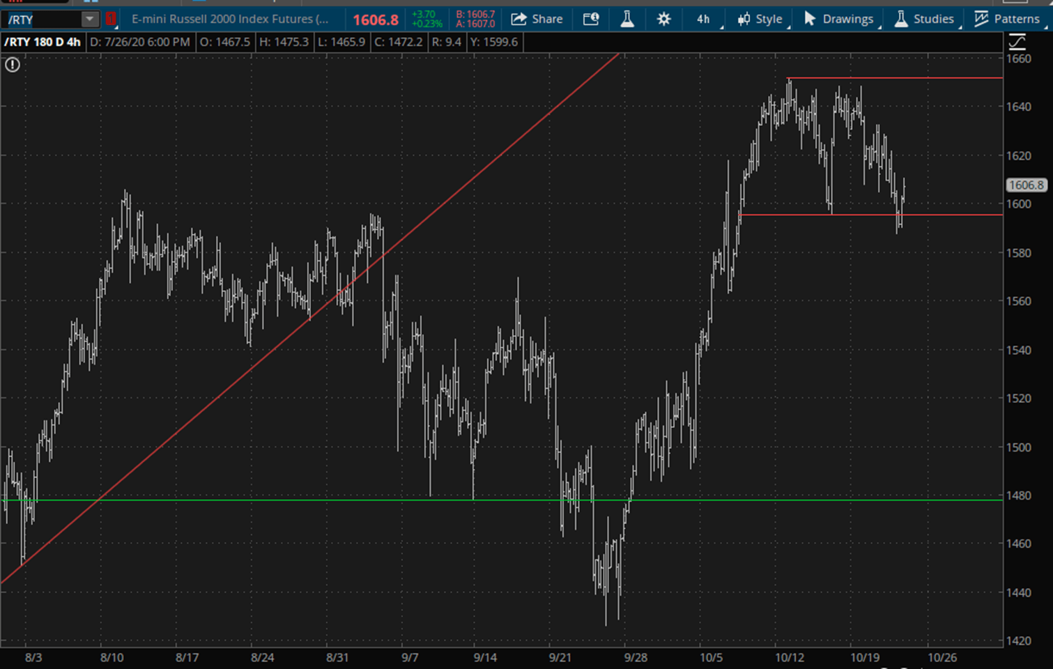 I’m cynical enough to know that last night, when the ES was down 25, that nothing was assured this morning. When I woke up, the /RTY was in the green and the losses otherwise were diminished. It is all about the saucer. Everything. This line is incredibly important. Look at the NQ and how it banged right to a halt at that red horizontal. Break it, and it’s show-time. They’re going to throw everything they’ve got and keeping this thing propped up until the end of time.