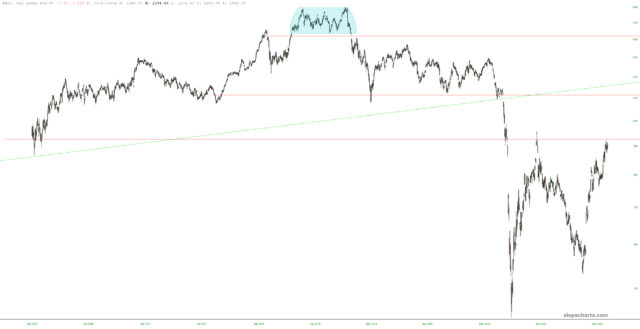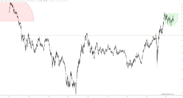 My hope that gold will have its day in the sun (well, more like multiple years in the sun) has never gone away. God knows I’d love to be reporting on daily lifetime highs in precious metals instead of crypto. The $XAU is starting to form what might be a nice continuation pattern in the form of a saucer.