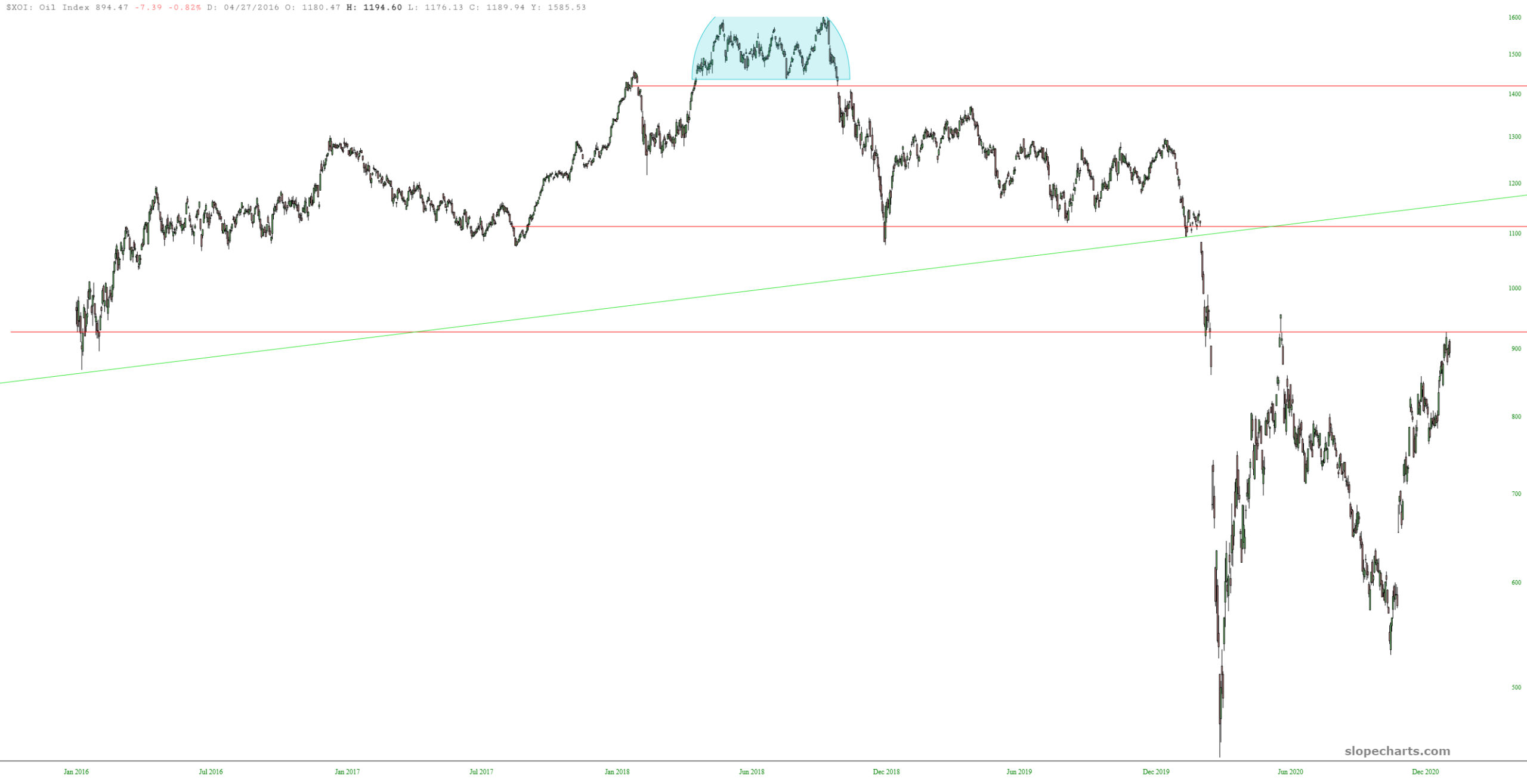 My favorite sector for bearishness remains energy; here is $XOI: