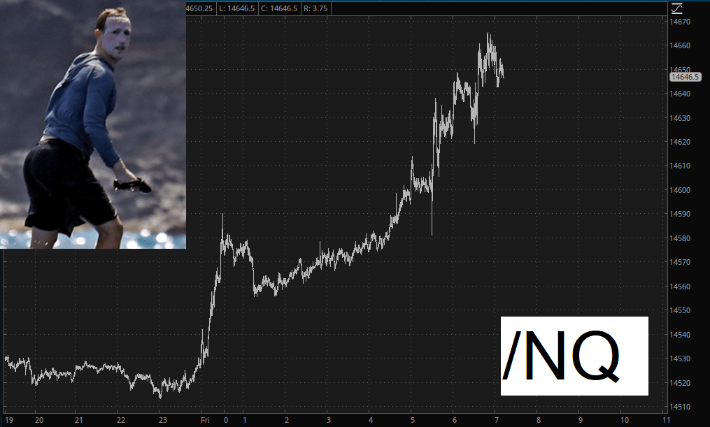 The /RTY small caps futures shows exactly why I didn’t bother with a “here’s what the jobs report did to the market” post. Because the pre-market movement is meaningless. At first it looked like the small caps were going to have an explosive day. The millisecond the market opened, it went into a free fall. No real reason for doing so. There should be NO logical reason for this. But it happens.