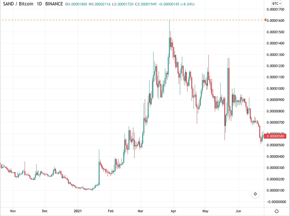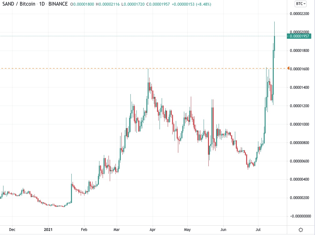 Case in point – shitcoins are already on the move. Here’s SAND for example which nobody every heard or cared about until now. Except apparently one of the altcoin chasers in my Crypto MasterMind group.