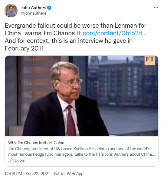 - Investors don’t really see Evergrande, the debt limit, the shortages, and the bubbling inflation as systemic risks, or,