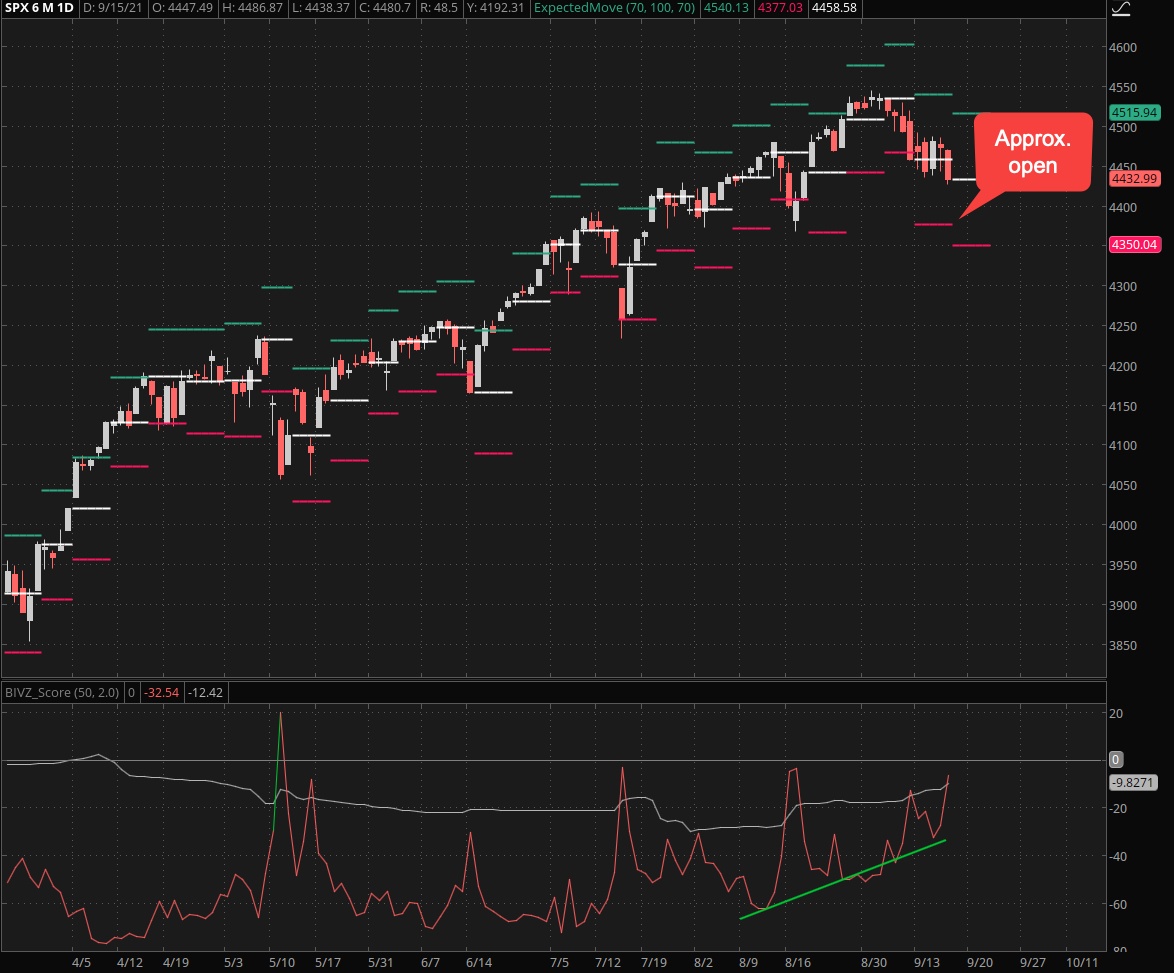As I’m typing this there are only 10 minutes to go until the open but given fair value of about -11 handles that puts us around 4365 on the SPX at the ring of the bell.