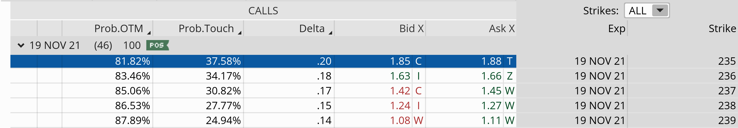 Bearish Spread Example: November 19, 2021 235/239 Bear Call Spread or Short Vertical Call Spread