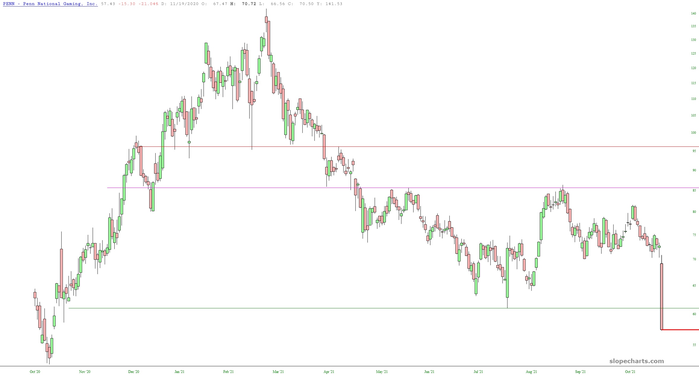 So symbol PENN was one of the monster winners after Covid, zooming hundreds of percent higher, and taking David Portnoy’s net worth with it.