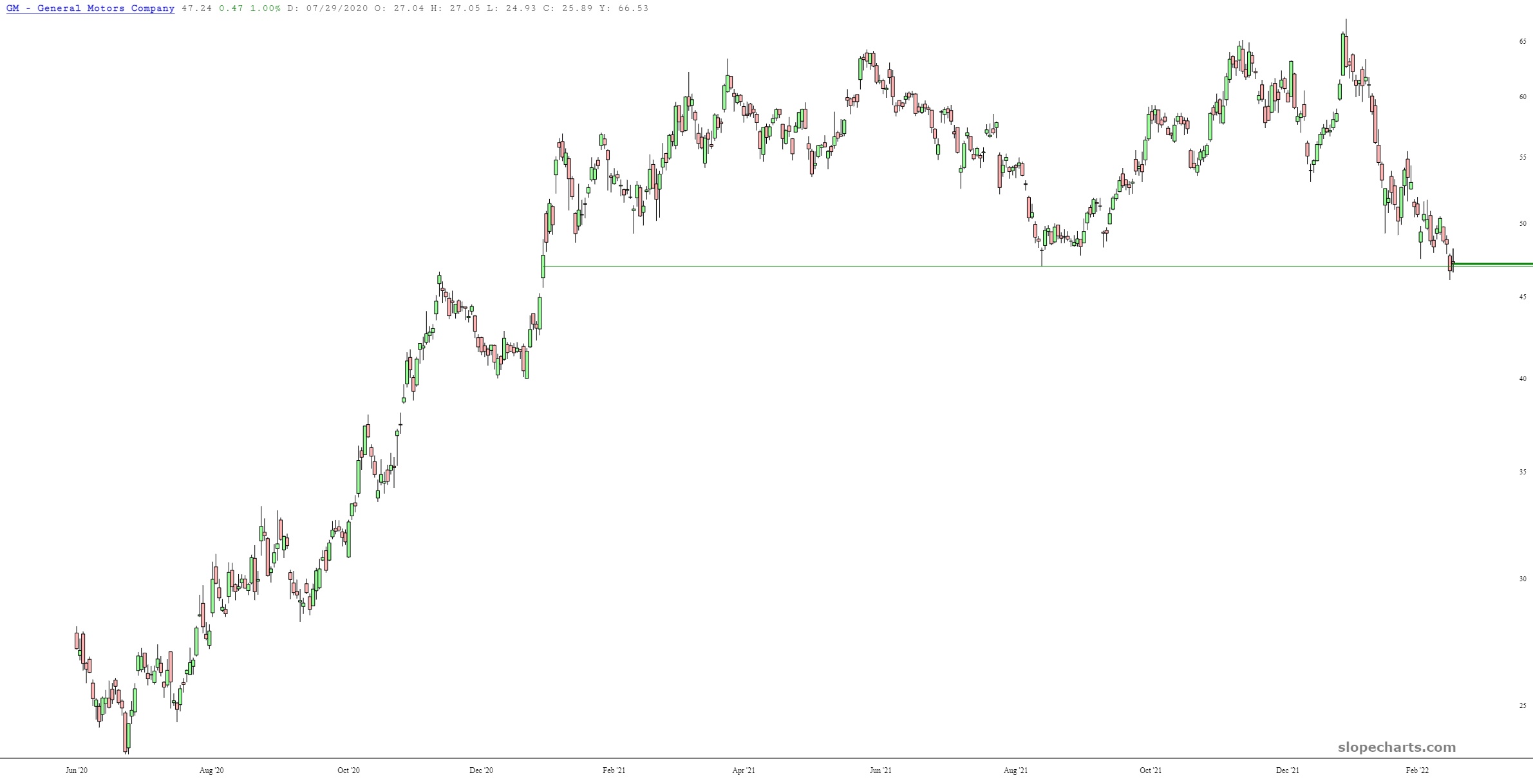 As for General Motors – – equally regrettable – – let’s just say that if this support level fails, it’s show-time.
