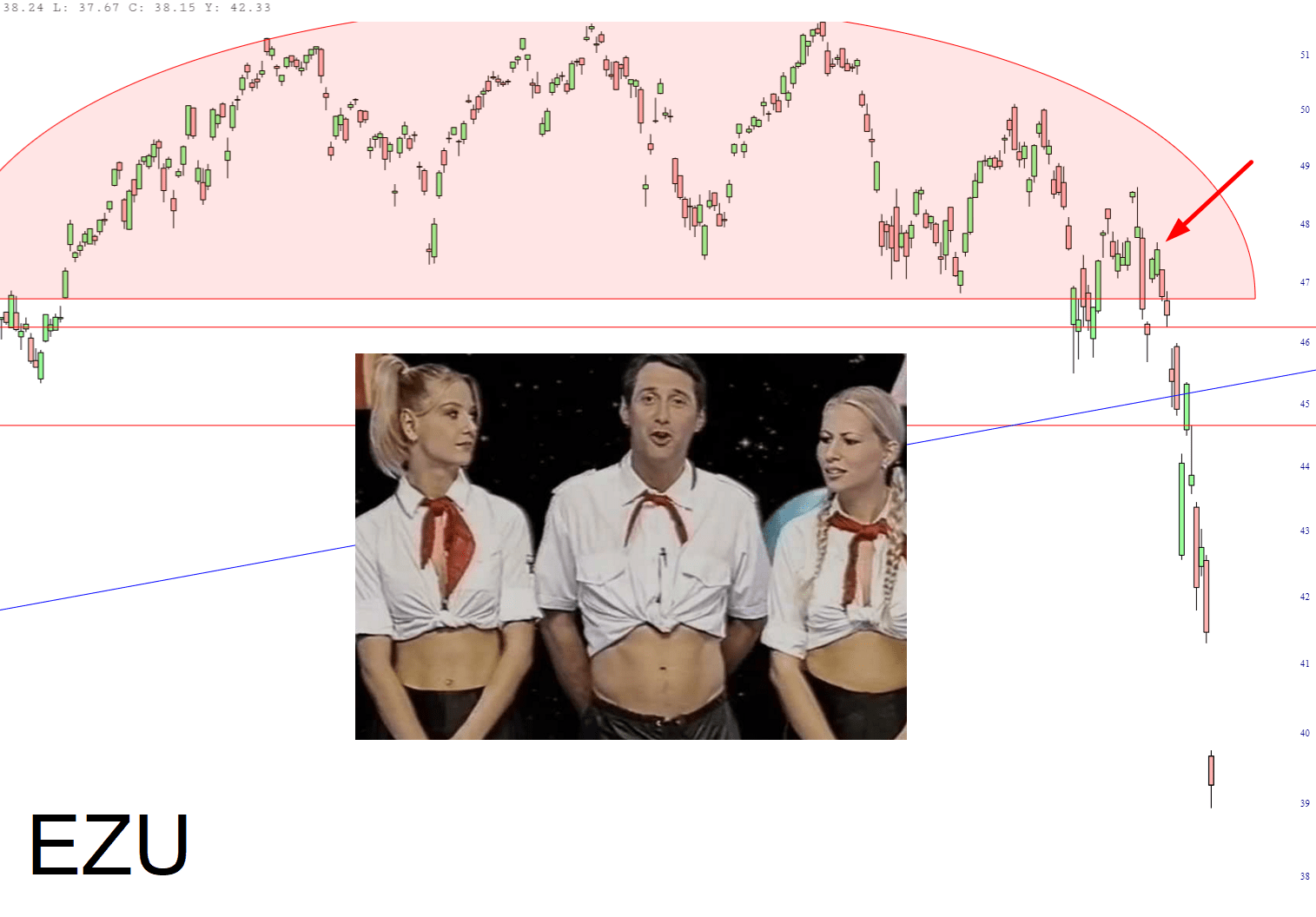 Here is a link to my post of February 15th in which I said, very simply, to short EZU. Here’s what the chart looked like.
