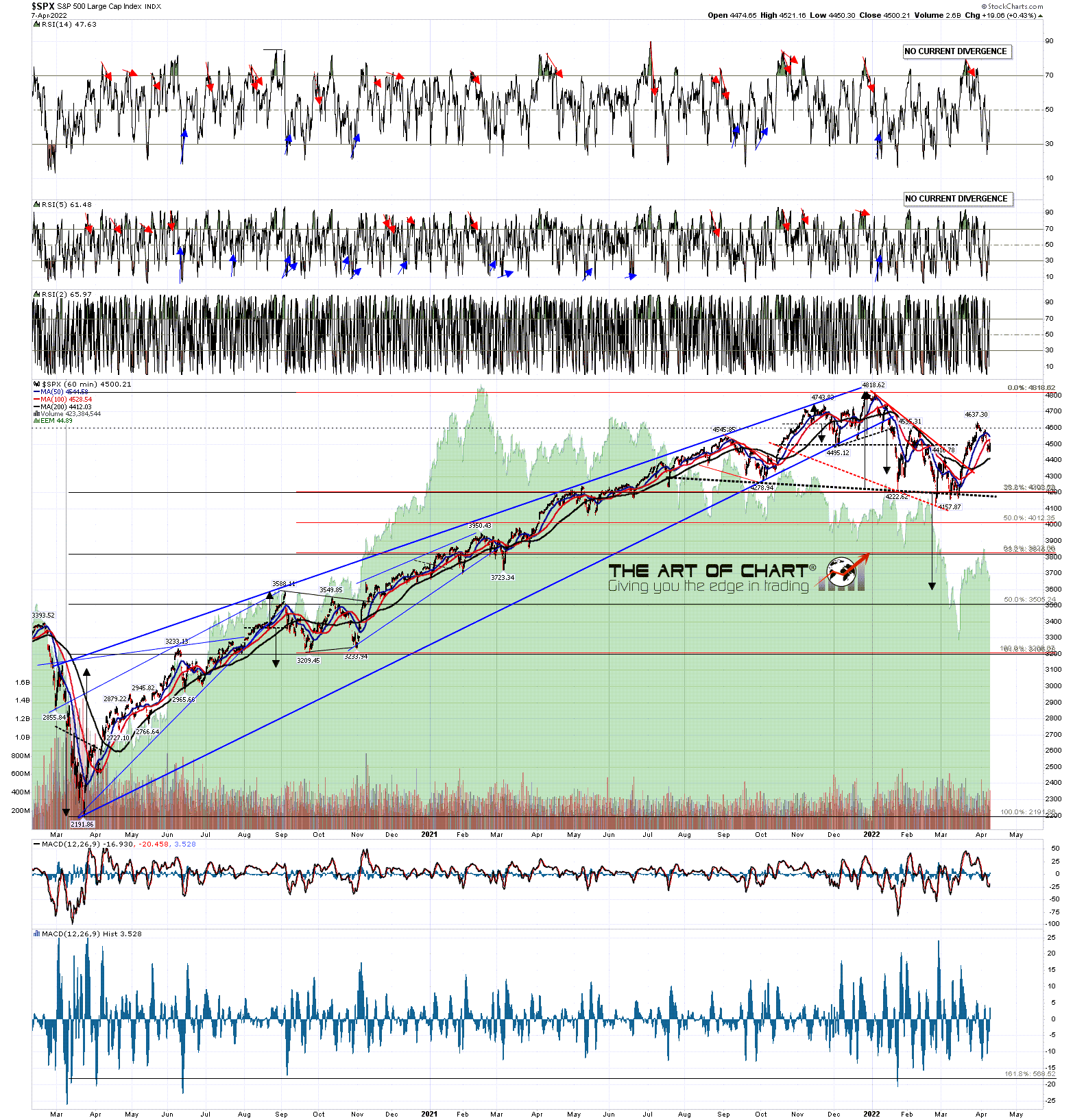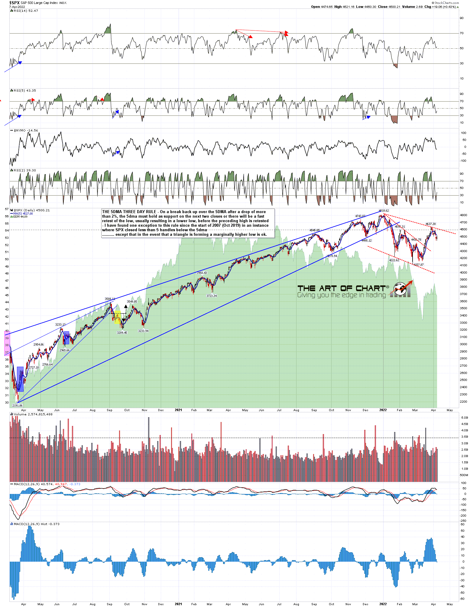 Another important short term level of resistance is the 5dma, now at 4527. That’s not important for a Three Day Rule break, as SPX is still on the Three Day Rule looking for a retest of the 2022 low at 4157.87 before a retest of the all time high at 4818.62, but it is still a significant short term resistance level.
