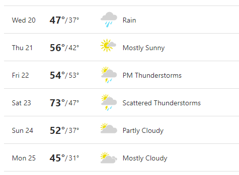 Pick just about anywhere else in the country – – for this post, I randomly chose Minneapolis – – and it actually changes from day to day, and sometimes wildly. (Keep in mind, this is April, the most moderate month of the year). If the high temperature was thirty degrees different from one day to the next, it would be front page news around here.