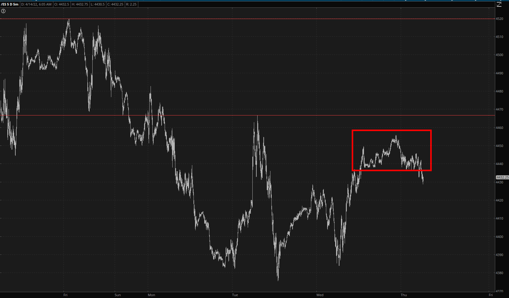 Speaking of little down, that’s what we got (as of pre-open, at least) as the /ES has meandered pointlessly since yesterday, producing a petite rounded top.