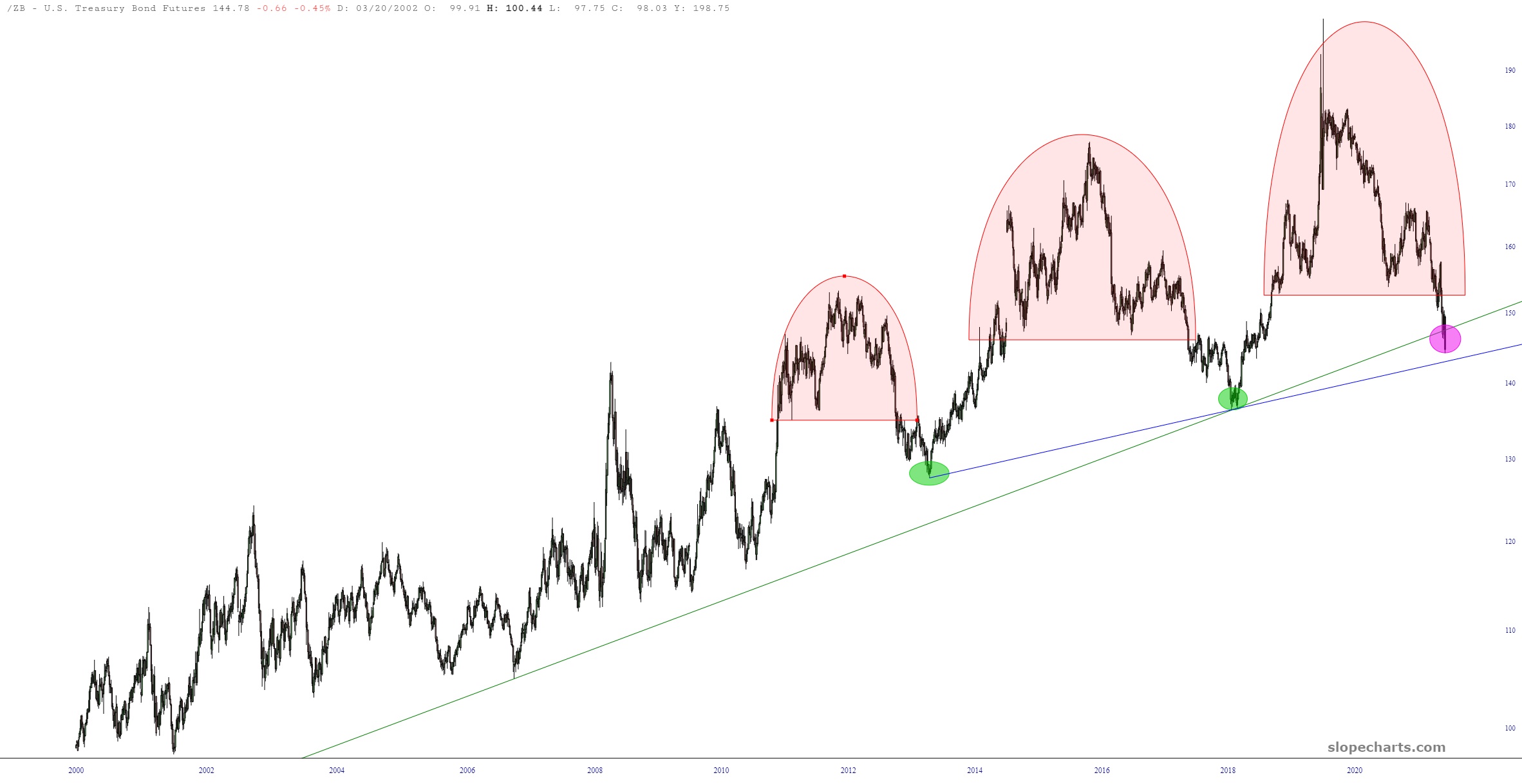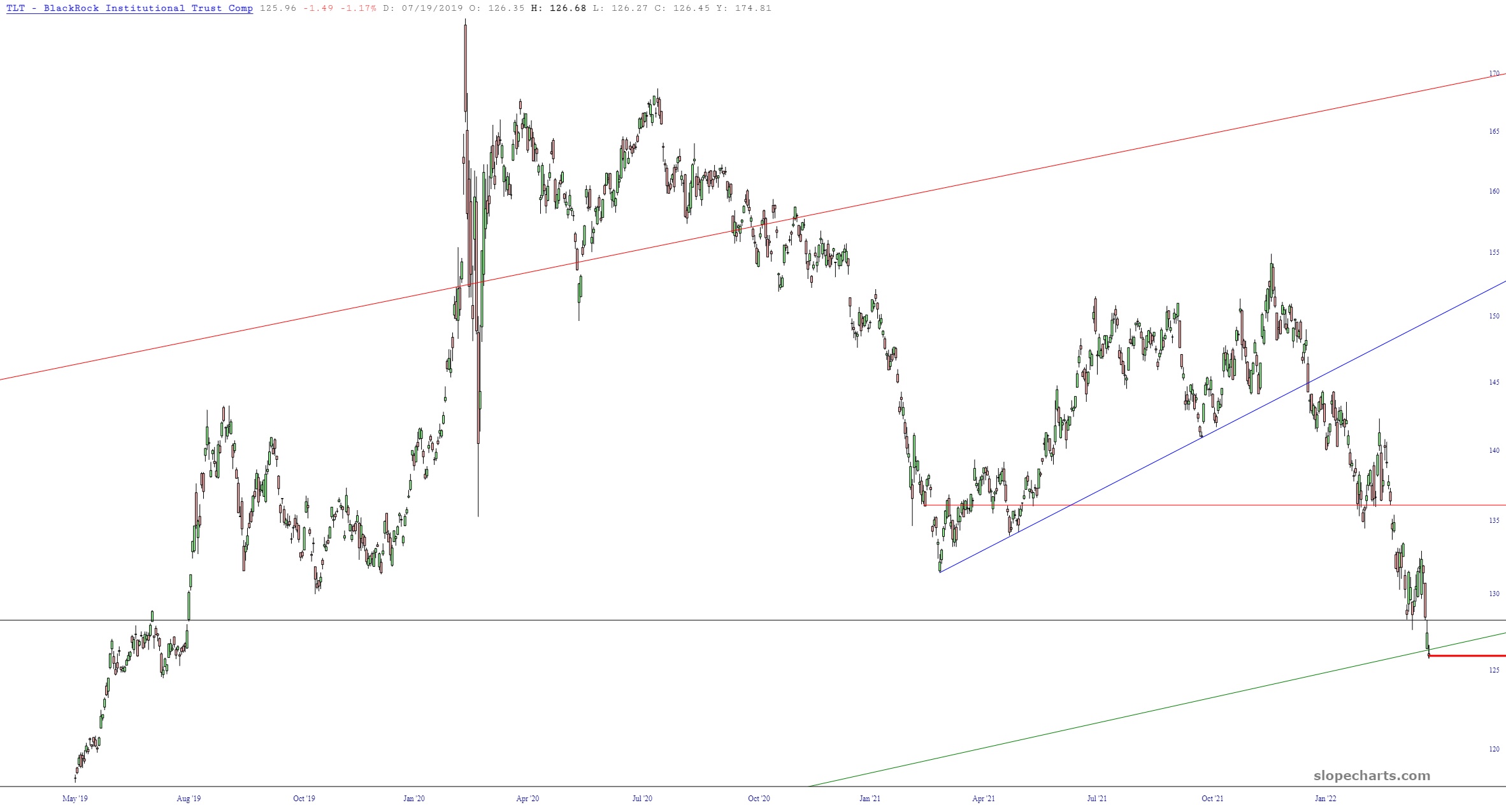 The last question is whether or not the long-term bond trend breaks as well. OK, actually, it has already broken, but I’ve provided an even more lenient one as well. There isn’t much room left.