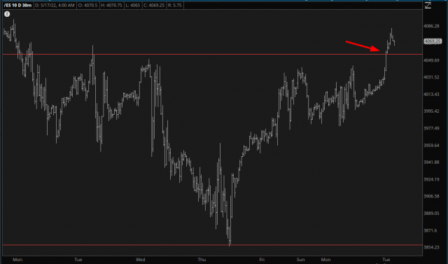 It’s 4:15 in the morning as I compose this, and even though there are some important economic reports coming out at 5:30 a.m. as well as a Powell speech at 11 a.m. (these are all PST), I wanted to get this post out there. The bullish base of the /ES has completed, because of this breakout: